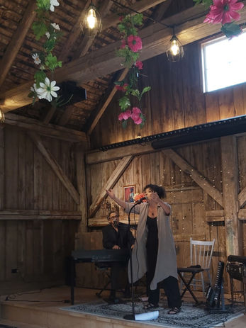 Ces peintures étaient présentées sur les murs de la grange et ont inauguré le premier Dimanche Chantant de la saison, avec Isabelle Cyr et Yves Marchand.